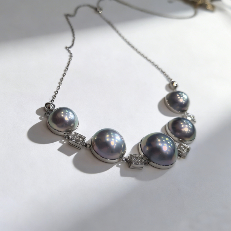 Be the first to review “Amami Island Seawater Silver Cool Tone Mabe Pearl & Diamond Statement Necklace” Cancel reply