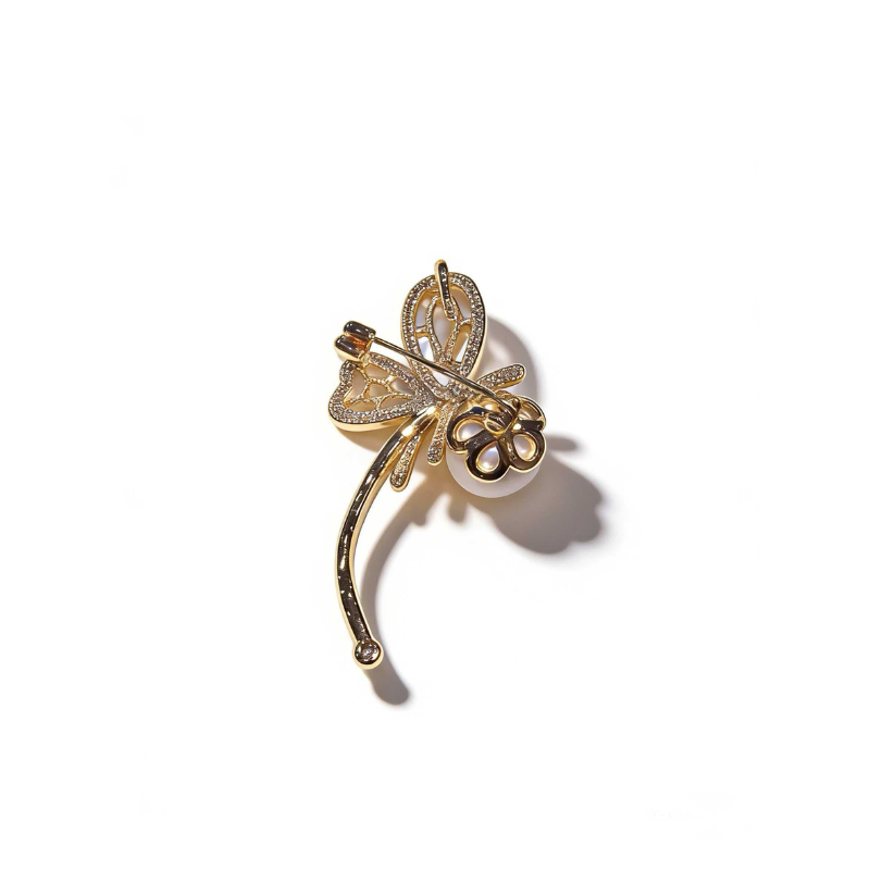 Freshwater Pearl Dragonfly Brooch with Mother-of-Pearl Wings