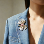 Designed to elevate blazers, coats, scarves, and evening looks, this piece balances iridescent glow with clean, sculptural structure—an effortless statement that feels collected and timeless.