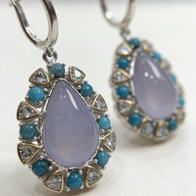 Be the first to review “Turquoise & Lavender Chalcedony Drop Earrings” Cancel reply